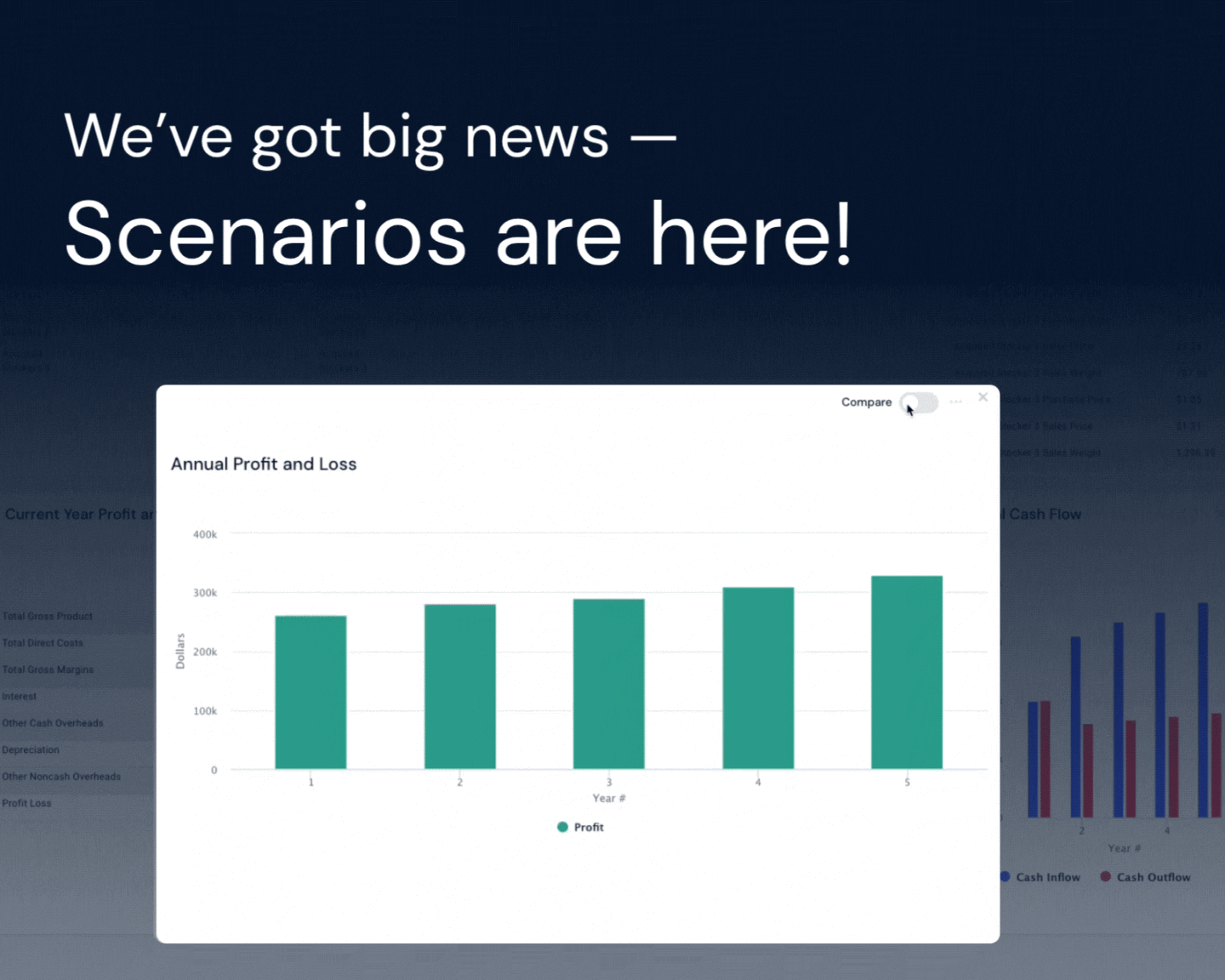 Want to dive deeper? Use the “Compare” tool in any report to see how your scenarios stack up.